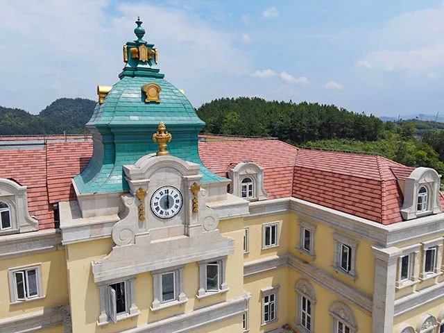 如此美麗的建筑群,在屋面裝飾上怎么能缺少業(yè)內(nèi)知名的榮冠陶瓦為其增添色彩。